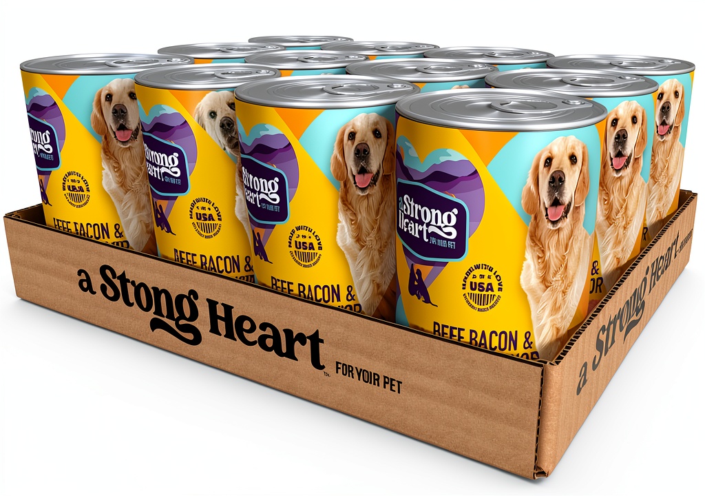 A Strong Heart wet dog food delivers a premium blend of real beef, smoky bacon, and creamy cheese flavors, crafted to entice your dog’s palate while providing essential nutrients. Each 13.2-ounce can is part of a pack of 12, offering convenience and value. This complete meal supports strong bones, a shiny coat, and overall vitality, with a formula designed for easy digestion, making it ideal for dogs with sensitive stomachs. Manufactured by Simmons Pet Food in the USA, it uses globally sourced ingredients to ensure quality and safety.