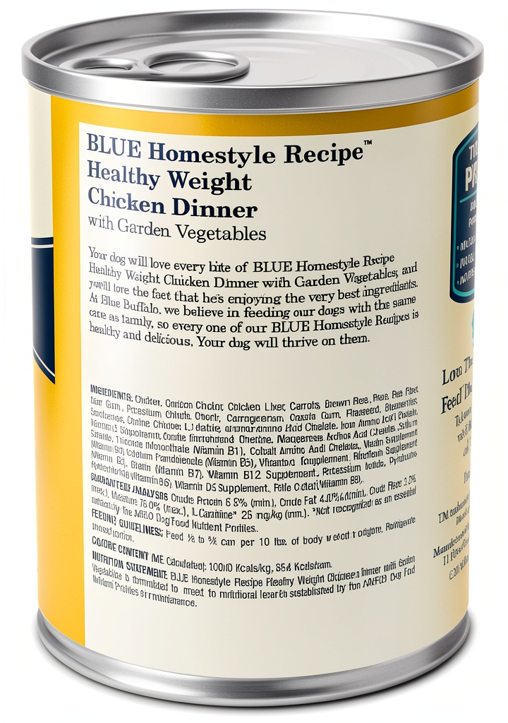 Blue Buffalo Homestyle Recipe Healthy Weight Adult Wet Dog Food in Beef Dinner with Garden Vegetables is designed to provide a nutritious and delicious meal for your canine companion. This product features real beef as the number one ingredient, ensuring a high-quality protein source that supports muscle health. It is formulated with reduced calories from fat to aid in weight management and includes L-Carnitine to promote lean muscle development. The recipe is free from chicken by-product meals, corn, wheat, and soy, making it a wholesome choice for dogs with sensitivities. Each can contains 12.5 ounces, and the product dimensions are 12 x 9 x 4.1 inches, weighing 9.4 pounds for a pack of twelve cans. Manufactured by Blue Buffalo Company, Ltd, it has an item model number of 10017 and was first available on September 22, 2014. With a 4.6 out of 5 stars rating from over 1,500 customer reviews, it ranks highly in pet supplies, specifically in canned dog food.