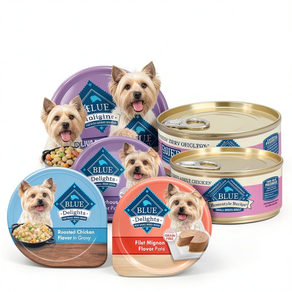 BLUE Delights Small Breed Wet Dog Food variety pack display